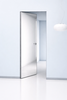 Каркасная дверь Hausdoors с зеркалом на лицевой части, с другой стороны под покраску, открывание внутрь. Полотна изготавливаются с фабричной фрезеровкой под замок 196 мм и петли AGB Eclipse 2.2. Со стороны зеркала предусмотрено одно или два отверстия - под ручку и фиксатор/цилиндр. Рекомендуется к установке ручка на круглой розетке диаметром не менее 52 мм.