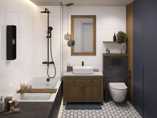 4) Раковина (комплект мебели для ванной комнаты или тумба с раковиной)
