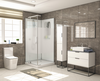поддон 15 см, стекло 6 мм, белая задняя стенка, зеркало, ручной душ, душевой шланг, полочка, сифон с гидрозатвором