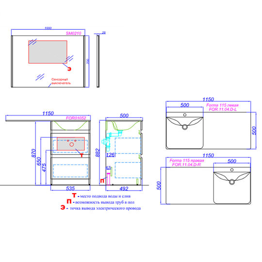 В комплект тумбы входят: специальный сифон, позволяющий экономить пространство мебели, а также кронштейн для крепления крыла умывальника.