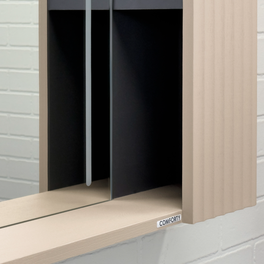 Зеркало-шкаф Comforty Ангара 90 - зеркальное высококачественное полотно с амальгамой на основе серебра. Боковые фасадные панели декорированы вертикальной фрезеровкой. За каждой из боковых панелей по две полки, доступ к которым осуществляется со стороны зеркала. В модели применяется декоративная плёнка с эффектом Soft-Touch с тиснением под текстуру дуба. Зеркало оборудовано линейной вертикальной LED подсветкой с бесконтактным включателем со встроенной функцией регулировки яркости. Температура подсветки: 6000-6500К холодная. Центральная часть задней поверхности зеркала оборудована нагревательным элементом, избавляя его от появления конденсата. Подключение к сети 220В с помощью евровилки. Длина кабеля - 950 мм.