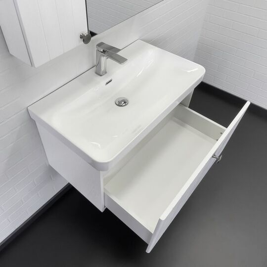 Подвесная тумба Истра 80П с одним широким выдвижным ящиком, оснащенным направляющими Hettich с системой плавного закрывания. Фасад тумбы изготовлен из МДФ, фрезерован вертикальным узором и и облицован пленкой имитирующей текстуру дерева ясень беленый. Внутренние детали из влагостойкого ЛДСП. Ручка из цинкового сплава в цвете состаренный черненый. Тумба подготовлена для подключения водоснабжения снизу и сзади.