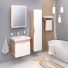 Пенал Skandi оснащен одной распашной дверцей (петли справа). Корпус выполнен из ЛДСП в древесной текстуре "дуб крафт золотой", а фасад - из МДФ в белой глянцевой эмали. Внутри пенала расположены 4 полки, которые создают достаточно места для хранения всевозможных гигиенических принадлежностей и бытовой химии. Дверца мягко и плавно закрывается благодаря петлям с доводчиком. Пенал выпускается только в правом исполнении. Лаконичным завершением общей композиции является стильная хромированная ручка.