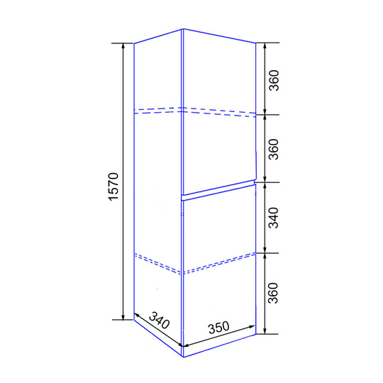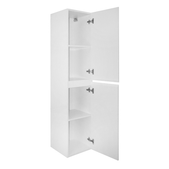 Пенал Azario Эстима 35 оснащен двумя распашными дверцами на доводчиках, за которыми спрятано по одной полочке. Корпус изготовлен из ЛДСП, фасады МДФ толщиной 16 мм. Корпус и фасады производства Kronospan. Бока и фасады крашеные итальянской эмалью.