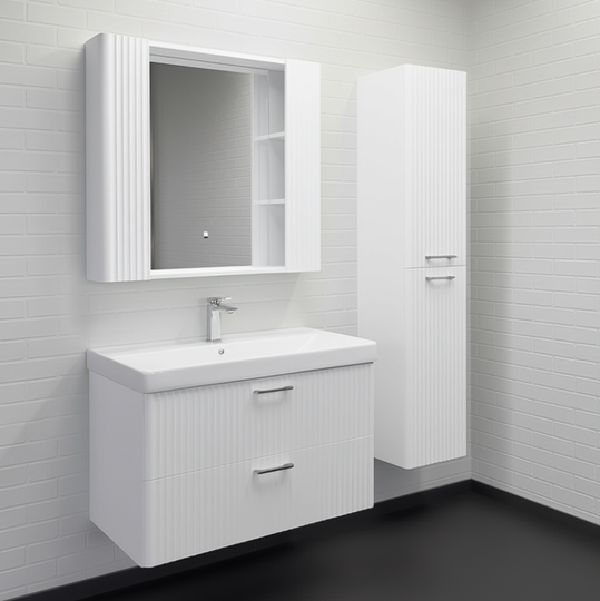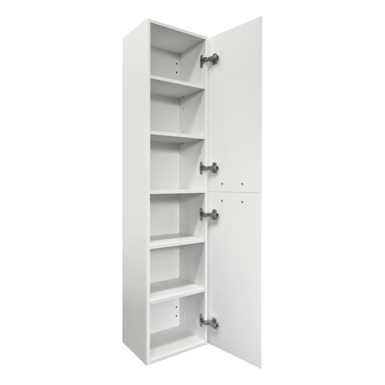 Пенал Comforty Ангара 35 оснащен двумя створками, за каждой из которых по две полки. Петли оборудованы механизмами плавного закрывания. Шкаф колонна может быть подвешена как с правым, так и с левым вариантом размещения петель створок. Для этого колонну нужно перевернуть.