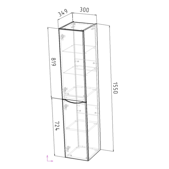 Пенал Grossman Виста 30 оснащен двумя распашными дверцами с петлями-доводчиками для плавного и бесшумного закрывания, а интегрированные ручки подчеркивают лаконичный дизайн. Внутри расположены 4 удобные полки для хранения.