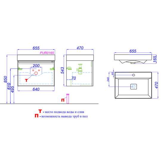 Тумба Pure 66 оснащена одним ящиком с плавным скольжением и мягким закрыванием.