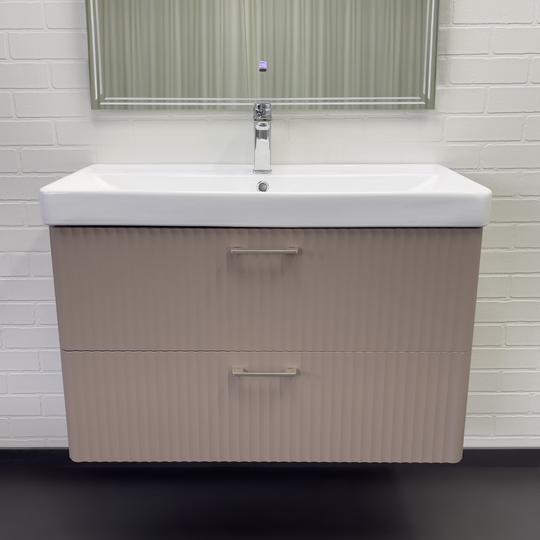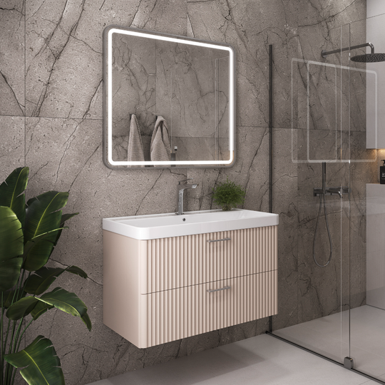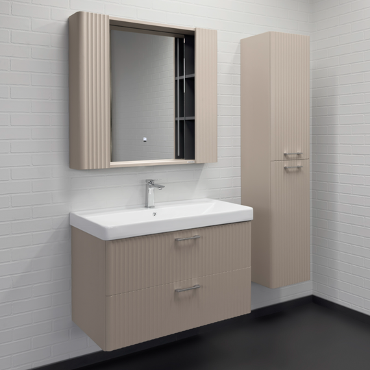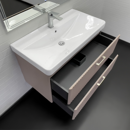 Тумба Comforty Ангара 90П оснащена двумя выдвижными ящиками с системой плавного закрывания. Фрезеровка фасадов выполнена в дорической форме. Внутренние детали тумбы выполнены из влагостойкого ЛДСП. Металлические ручки скобы под естественный хват цвета "жемчужный никель". Тумба подготовлена для подключения водоснабжения сзади и снизу.