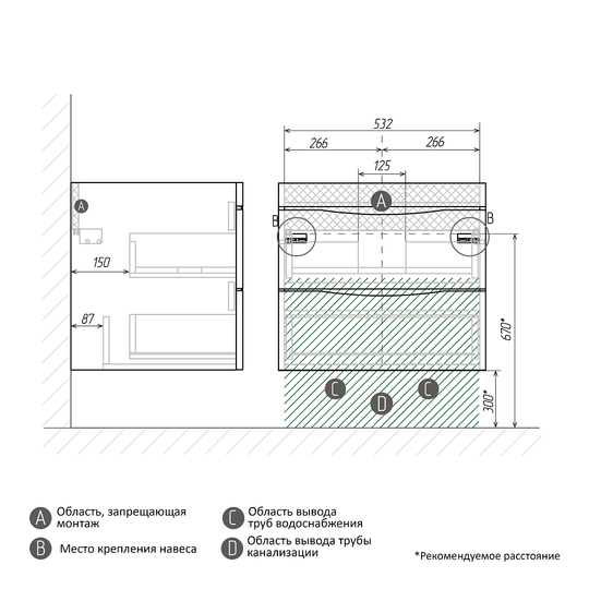 - Тумба Grossman Виста 58 цвет "белый глянец" с раковиной из искусственного мрамора Grossman Alice 58.