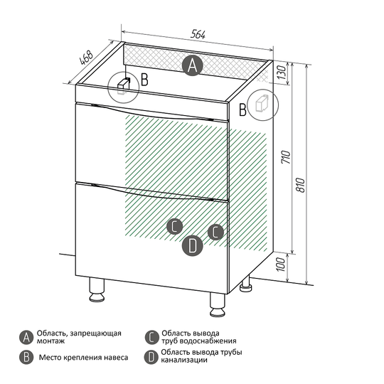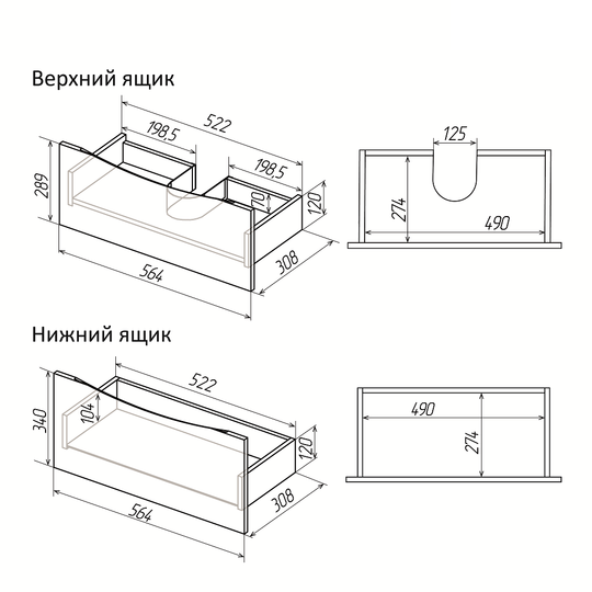 Два вместительных ящика оснащены скрытыми направляющими с доводчиком и удобными интегрированными ручками с плавными линиями. В комплект входят хромированные ножки высотой 10 см.