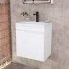 Тумба Итана Alexa 50 покрыта ПВХ пленкой с высокой степенью глянца. Петли с доводчиками обеспечивают плавное открывание и закрывание дверцы. Ручки интегрированы в фасад, что исключает возможность случайного удара о фурнитуру.