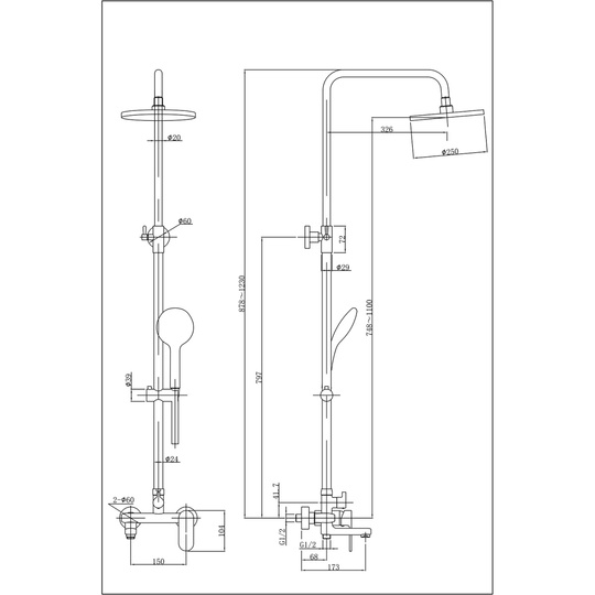 - Верхний душ круглый диаметр 25 см, материал ABS-пластик;